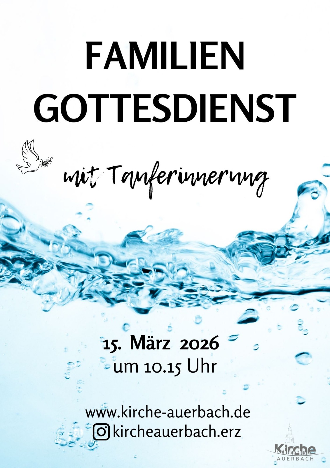 So 15.03. Familiengottesdienst mit Taufgedächtnis 10:15 - 11:30 Uhr Kirche Auerbach |